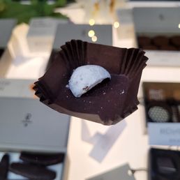 I was offered a sample of the Rosemary olive oil truffle and it was soo smooth and just a hint of Rosemary coming through. I purchased the Noir box, but wish I purchased more because these truffles are unique and each flavor is a different experience. I was greeted when I entered and the young lady discussed the differences between the boxes I asked about. It is located in the Ferry building and can be missed if it is a busy day. I returned on a weekday and noticed the crowd was smaller and I did not feel rushed while browsing.